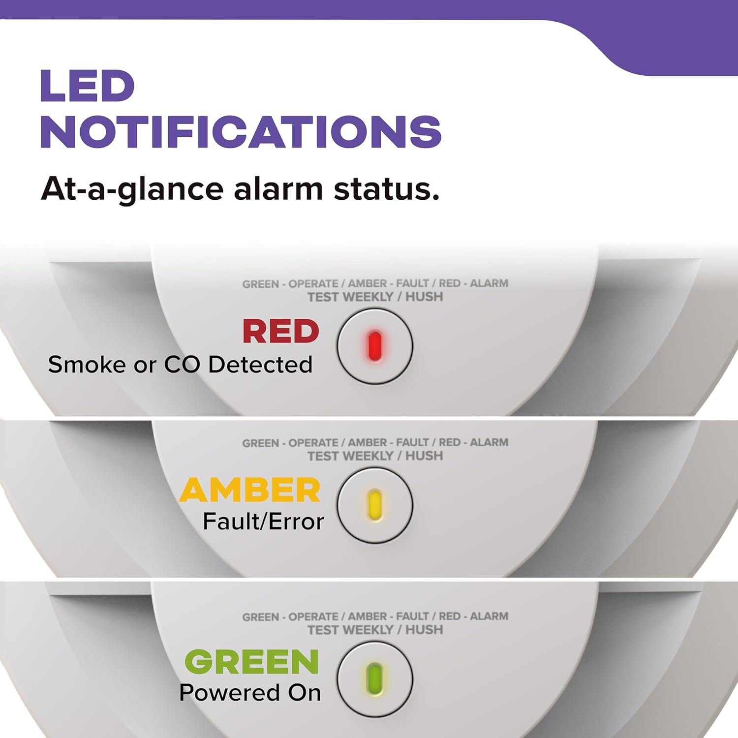 - Dual-sensor detection for carbon monoxide and smoke